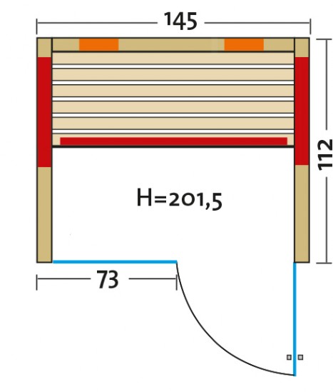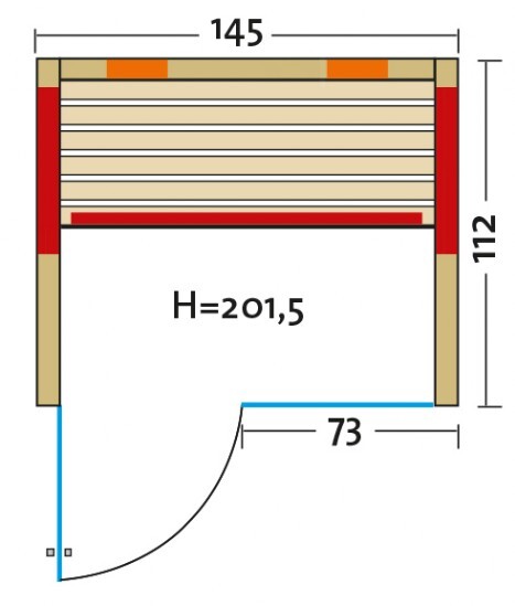 - Außenmaße: B 145 x T 112 x H 202 cm